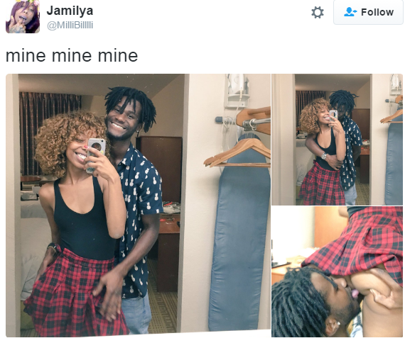 Twitter user Jamilya @MilliBilllli and her boyfriend... The third photo in the collage is what got people talking after she shared it online...see that after the cut...